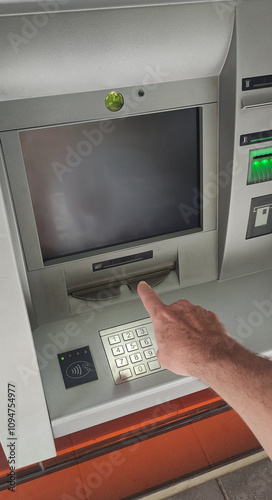 atm, hand, computer keyboard, transaction, banking, machine, cash, finance, payment, screen, security, electronic, withdrawal, deposit, finger, technology, interface, pin, terminal, card, access, digital, touch, user, modern