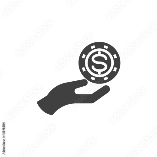 hand, dollar, coin, casino, chips, icon, vector, glyphs, pictogram, clip art, flat, symbol, illustration, signs, filled, single, design, logotype, solid, graphic, pixel, honed, simple, game, play, gamble, money, success, luck, give