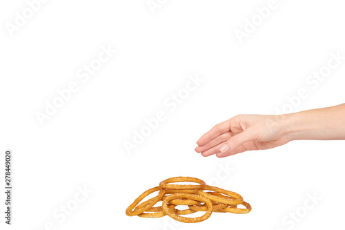 background, bagel, baked, bakery, bread, breakfast, brown, bun, closeup, food, fresh, heap, meal, pastry, snack, tasty, yellow, dessert, dry, group, ring, sweet, bagel, isolated, white, circle, crust, delicious, eat, eating, hand, hold, take, give