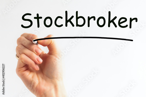 Hand writing inscription Stockbroker with marker, concept, stock image
