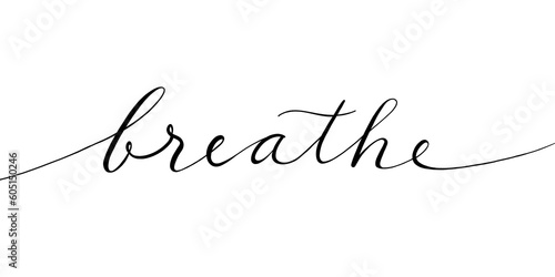 Hand written Breathe lettering black brush line. Thin modern calligraphy graphic elements. Positive and encouraging message.