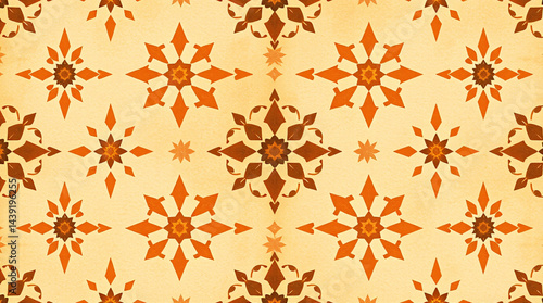Handcrafted boho motifs repeat with symmetry across sandy watercolor surfaces.