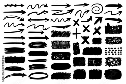 Hand-Drawn Arrows, Scribbles and Textures – Marker Brush Stroke Doodles, Grunge Abstract Design Elements
