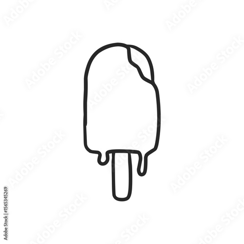 popsicle, hand-drawn, bitten, melting, summer, refreshing, cold, sweet, dessert, snack, stick, drip, doodle, cartoon, illustration, vector, vignetting, simple, black-and-white, line art, icon, symbol, concept, heat, cool, indulgence, menu, graphic, design, children, happiness, celebration, party, art, minimal, white background, isolated, single, drawing, messy, delicious, dripping