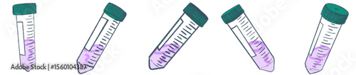 Hand-Drawn Centrifuge Tube Illustration Set — Purple gradient liquid lab tubes with green caps and label space, perfect for science, biology, chemistry, medical research presentations, laboratory