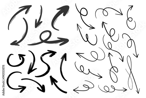 Hand-drawn Curved and Looped Arrows Collection