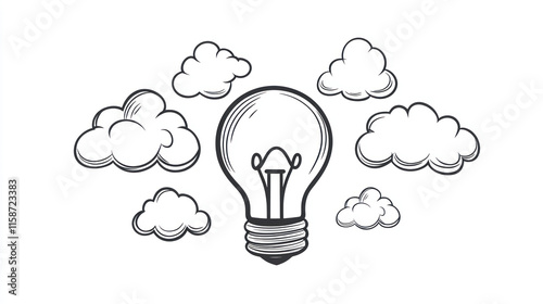 Hand-drawn lightbulb illustration with clouds, symbolizing ideas and inspiration.