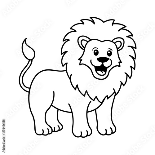 lion, animal, mammal, felino, big, cat, cartoon, drawing, outline, hand-drawn, simple, happy, smiling, tail, mane, fur, paw, teeth, open, mouth, cute, playful, zoo, wildlife, safari, africa, graphic, design, art, isolated, character, cheerful, friendly, fun, wild
