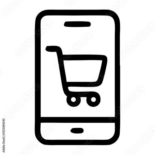 shopping cart, smartphone, mobile, cart, online, shop, e-business, retail, commerce, purchase, application, icon, hand-drawn, outline, symbol, mobile phone, device, contraption, screen, digital, technology, cyberspace, store, consumerism, business, market, sale, trade, buy, selling, order, delivery, shipping, design, graphic, pictogram, glyphs, signs, element, interface, drawing, hand-made, doodle