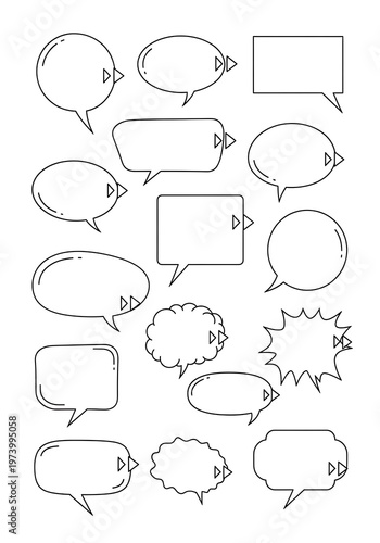 speech, bubble, dialogue, communication, cartoon, comic, message, text, talk, conversation, quote, frame, shape, vector, illustration, drawing, hand-drawn, vignetting, outline, graphic, design, element, icon, symbol, white, black, simple, isolated, set, collection, balloon, thought, idea, comment, remark, expression, narrative, story, art, creative, style, retro, vintage, modern, template, label, banner, sticker, clip art