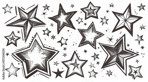 Hand-drawn stars in different sizes and shapes on a white background. The stars are rendered in vector format, ensuring they can be scaled to any size without losing quality.