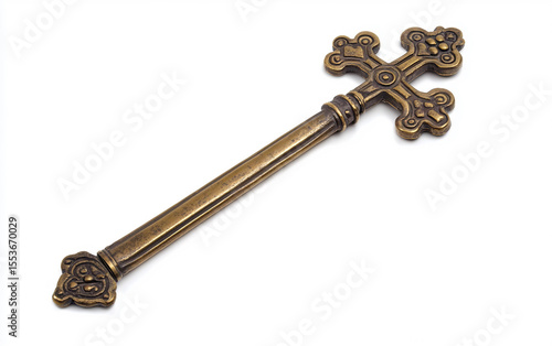 Handheld brass cross used during Epiphany processions with intricate details. Generative AI.