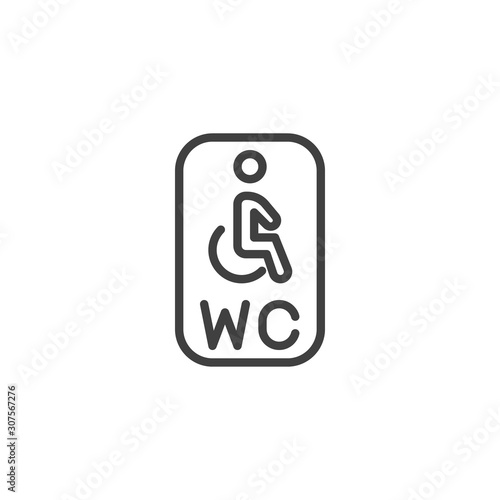 Handicap toilet sign line icon. linear style sign for mobile concept and web design. Disabled restroom outline vector icon. Symbol, logo illustration. Vector graphics
