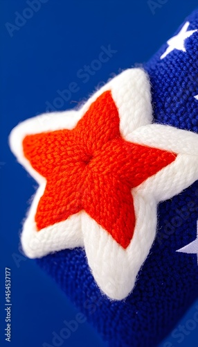 knitted, star, red, white, blue, hand-made, craft, threaded, wool, textile, patriotic, american, star-shaped, detail, closeup, texture, fabric, needlecraft, cosy, festive, winter, holiday, celebration, design, artwork, creation, stitch, pattern, colours, vibrant, bright, contrasting, unique, intricate, charming, adorable, cute, stylish, fashion, accessory, item, object, gift, present, decoration, home, decor