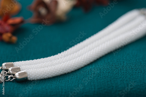 Handmade bracelet from a small white beads