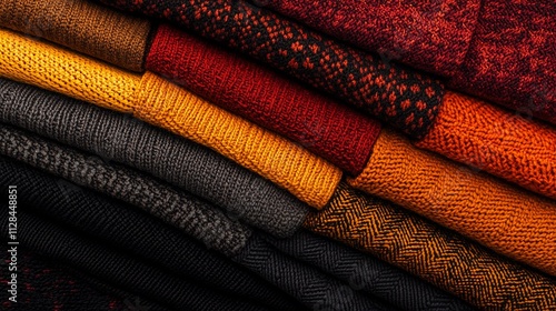Handmade knitted swatches displayed in a cascading layout, showcasing their warmth, natural textures, and artisanal design quality.