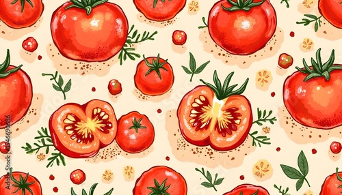 seamless, pattern, hand-painted, acrylic, tomatoes, vegetable, texture, culinary, kitchen, cooking, blog, farmer, market, grocery, store, shop, food, fresh, organic, ripe, red, natural, healthy, artistic, rustic, background, wallpaper, repeat, decorative, delicious, vibrant, nourishment, harvest, vegan, vegetarian, homemade, farm, produce, eco, style, design, isolated, agriculture, vegetable, freshness, closeup, diet, set, tomatoes