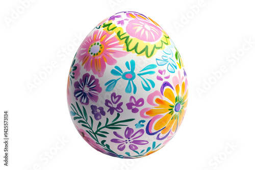 Hand-painted Easter egg with a floral pattern in vibrant colors isolated on transparent white background. Festive and decorative holiday concept