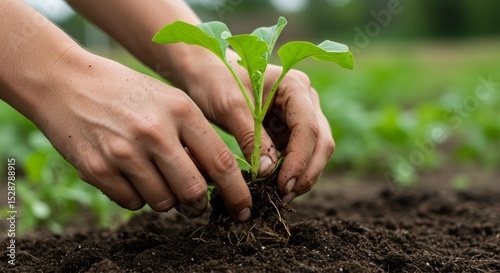 Hands Uprooting Fresh Green Plants from Soi