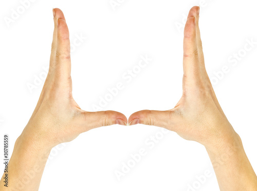 hand, house, concept, isolated, human, white, residential, structure, idea, signs, caucasian, on, symbol, estate, home, real, construction, activity, building, abstract, people, family, architecture, exterior, community, oneness, friendship, business, finger, contemporary, female, protection, system, frame, design, showing, background, thumb, shape, safety