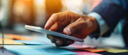 hand, holding, lifting, blue, phone, digital, chain, datum, transfer, technology, concept, blurred, background, innovation, security, network, transaction, verification, encryption, ledger, transparent, consensus, protocol, token, mining, node, currency