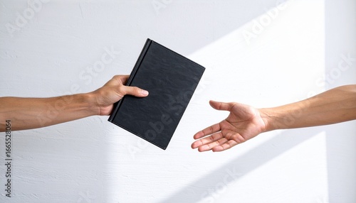 exchange, giving, hand, notebook, black, book, presentation, information, partnership, collaboration, business, meeting, deal, agreements, contract, teamwork, corporate, office, modern, clean, white, background, success, sharing, communication, help, support, assistance, professional, elegant, concept, trust, cognition, datum, document, detail, closeup, studio, light, shadow, gesture, transfer, handoff, signing