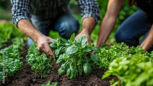 Hands Gardening Fresh Greens in a Vegetable Garden