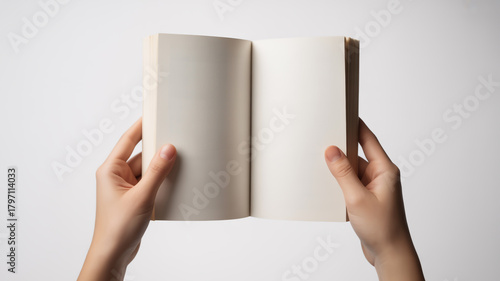 Hands holding an open blank book