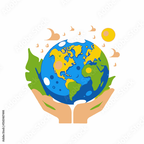 earth, day, environment, earth, globe, hand, care, save, planet, nature, ecology, green, climate, change, sustainability, conservation, protection, support, future, illustration, cartoon, graphic, vector, design, weather, sun, cloud, rain, leaf, america, africa, europa, asia, continent, harmony, balance
