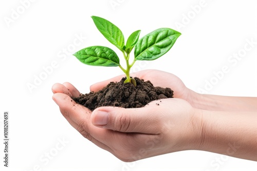 hand, holding, young, green, plant, isolated, germinating, earth, pile, closeup, ecology, environmental, protection, concept, white, background, copy, space, text, generative, ai, illustration, hand, agriculture, ground, environment, nature, growing, plantation, small, carefully, leaf, love, grass, garden, success, future, growth, life, gardening, new, farmer, conceptual, grow, 1