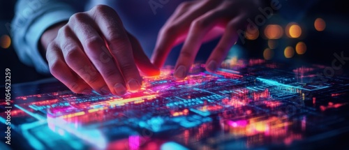 hand, technology, digital, interface, datum, visualisation, neon, graphic, interaction, futuristic, design, circuit, light, colourful, innovation, display, screen, electronic, information, connectivity, programming, software, user, modern, network, system, computing, science, creativity, analysis, trend, automation, engineering, research, development, virtual, reality, simulation, tool, cyber, intelligence, manipulation, aesthetic, dynamic, hardware, application, integration