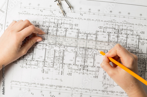 Hands of an architect-designer working on a project