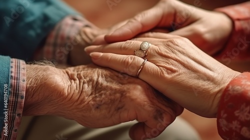 Hands of an elderly person and a younger person, care, love