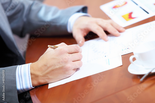 Hands of businessman writing