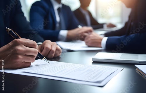 hands of businessmen sitting at the table on blurred office back