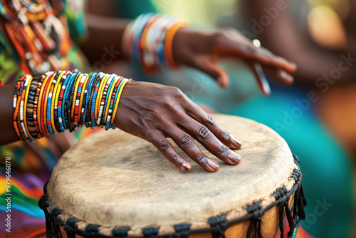 Hands playing a djembe drum, showcasing the vibrant culture and rhythmic traditions of africa