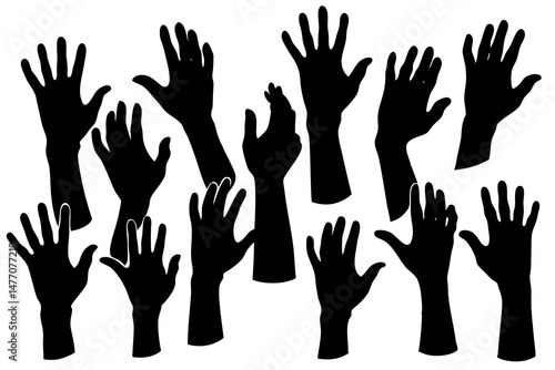 hand, hand, vector, silhouette, finger, people, illustration, volunteer, arm, signs, up, icon, finger, group, crowd, palm, raised, charity, art, voting, help, design, 5, symbol, human