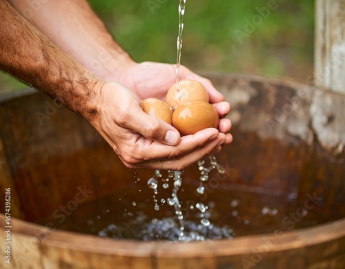 egg, washing, hand, water, bowl, wooden, fresh, farm, organic, clean, healthy, food, produce, kitchen, nature, rural, agriculture, rustic, natural, harvest, spring, summer