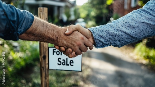 Handshake Agreement Home Buyer Seller Real Estate For Sale Sign