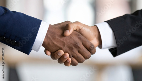 Handshake: An emblem of business collaboration and agreement. Two hands clasped in a firm handshake, a visual promise of partnership, teamwork, and success.