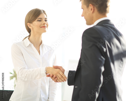 handshake young business woman with a colleague