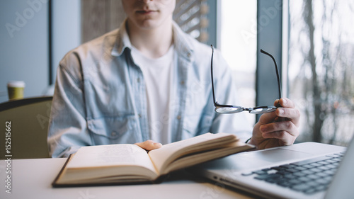 adult, attractive, book, business, cafes, casual attire, caucasian, checking, cute, eyeglass, freelance, contraption, glad, goggles, goal, photogenic, happy, idea, jacket, jean, laptop, male, man, nice, optimistic, person, plan, portrait, positive, professional, reading, eatery, resting, shirt, to sit, smart, smile, smiling, stylish, table, take-off, coffee break, technology, sleepy, using, weary, white, window, young