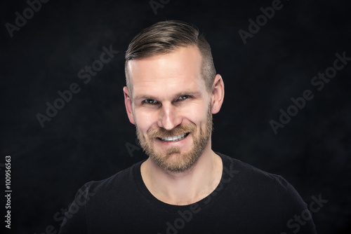 man, photogenic, black, dark, portrait, model, male, young, attractive, adult, 1, smile, person, single, background, blue, view, caucasian, fashion, happy, hair, brown, frontal, posing, eye, modern, one person, closeup, standing, copy space, good-looking, white, face, closeup, guy, studio, look, shot, head, shadow, russian, serious, calm, casual attire, people, grey, and, youth