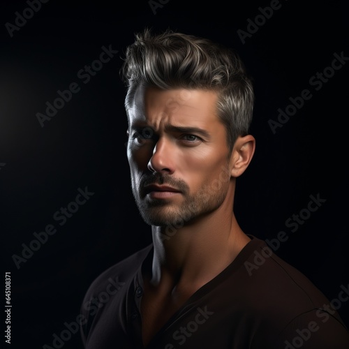 photogenic, man, nice, coiffure, dark, background, portrait, male, attractive, stylish, young, guy, fashion, model, elegant, gentleman, grooming, trendy, chic, sophisticated, dapper, confident, masculine, charismatic, charming, fashionable, modern, haircut, look, studio, beauty, ai, generative