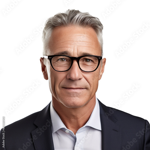 Handsome mature businessman in glasses isolated over transparent background, ai technology