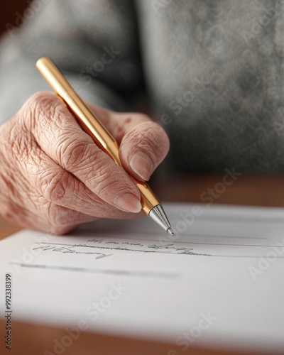 hand, writing, pen, paper, signature, elderly, closeup, professionalism, document, writer, ink, senior, finger, tool, creativity, art, expression, message, note, communication, gesture, detail, vintage, office, warm colors, nostalgia, craft, intent, sharpened, texture, light, composition, single object, simplicity, calm, studio, stationery, bequest, literature, task, process, tradition