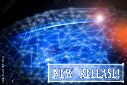 Handwriting text writing New Release. Conceptual photo announcing something newsworthy recent product Elements of this image furnished by NASA