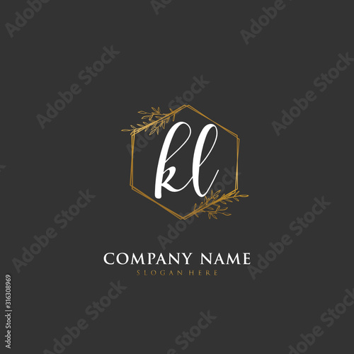 Handwritten initial letter K L KL for identity and logo. Vector logo template with handwriting and signature style.