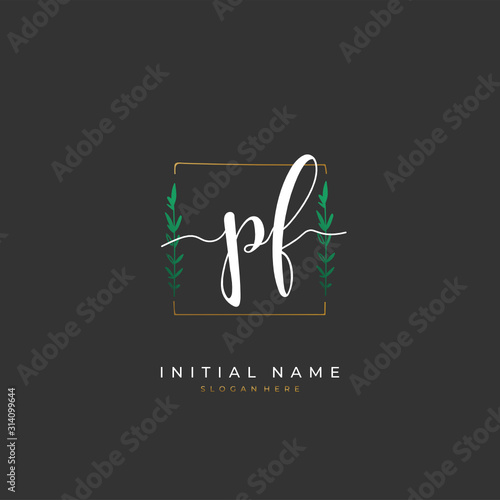 Handwritten initial letter P F PF for identity and logo. Vector logo template with handwriting and signature style.
