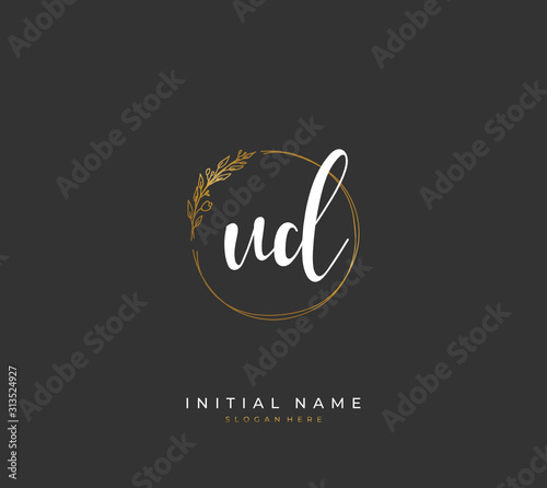 Handwritten initial letter U D UD for identity and logo. Vector logo template with handwriting and signature style.